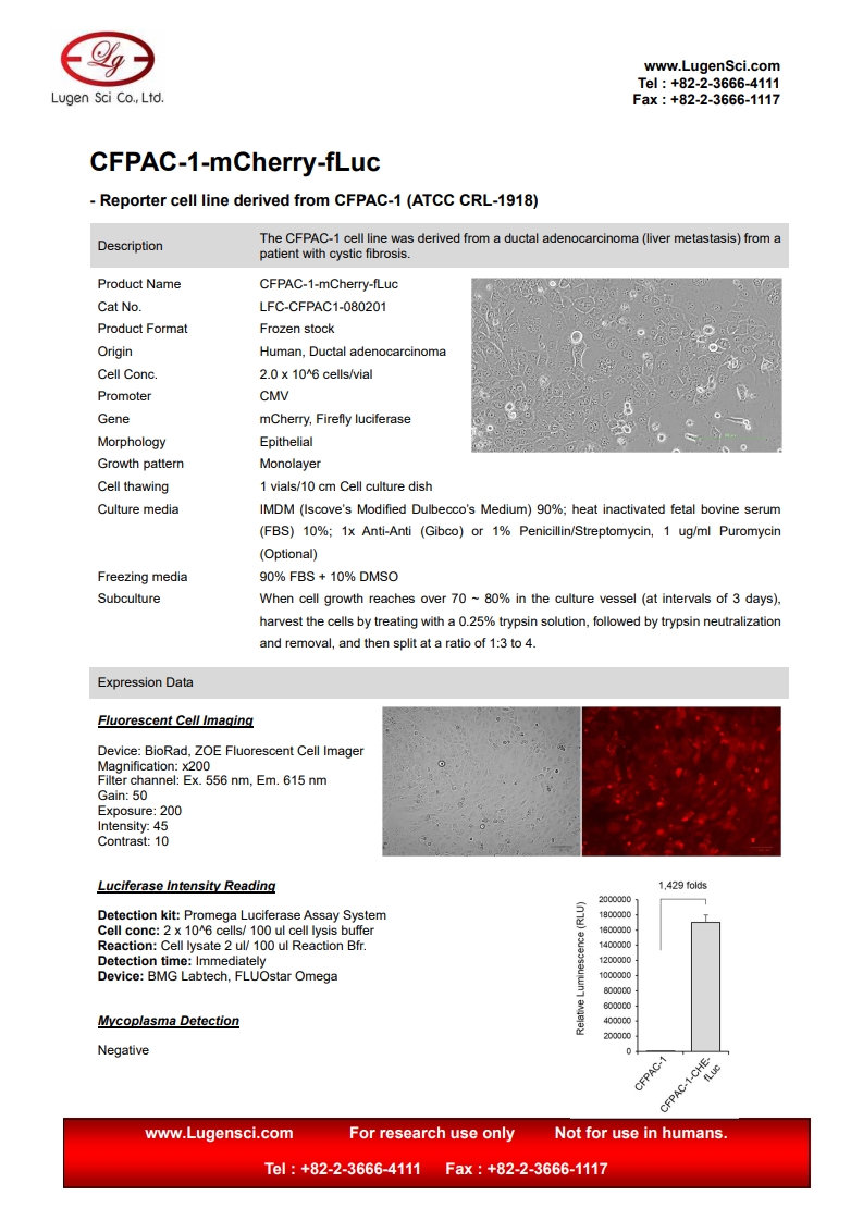 PRODUCT NAME CFPAC-1-mCherry-fLuc