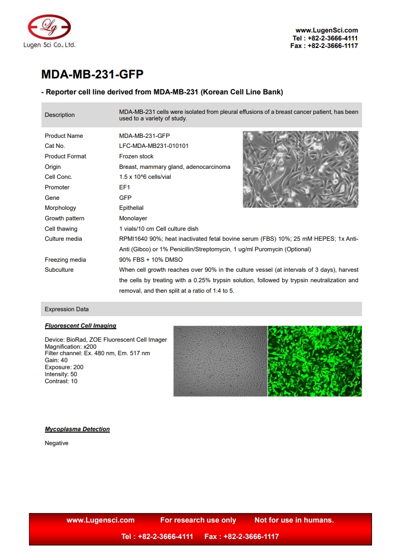 PRODUCT NAME MDA-MB-231-GFP
