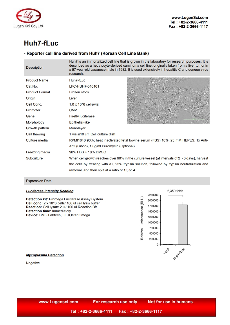 ǰ¸ñ ¸®½ºÆ®¿¡ ¾ø´Â GFP/RFP/Luciferase Cell Lineµµ CustomÁ¦ÀÛ °¡´ÉÇÏ¿À´Ï º»»ç·Î ¹®Àǹٶø´Ï´Ù.