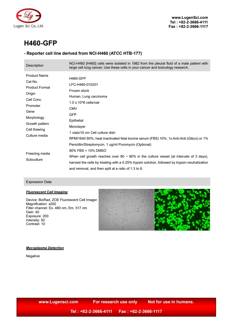 ǰ¸ñ ¸®½ºÆ®¿¡ ¾ø´Â GFP/RFP/Luciferase Cell Lineµµ CustomÁ¦ÀÛ °¡´ÉÇÏ¿À´Ï º»»ç·Î ¹®Àǹٶø´Ï´Ù.