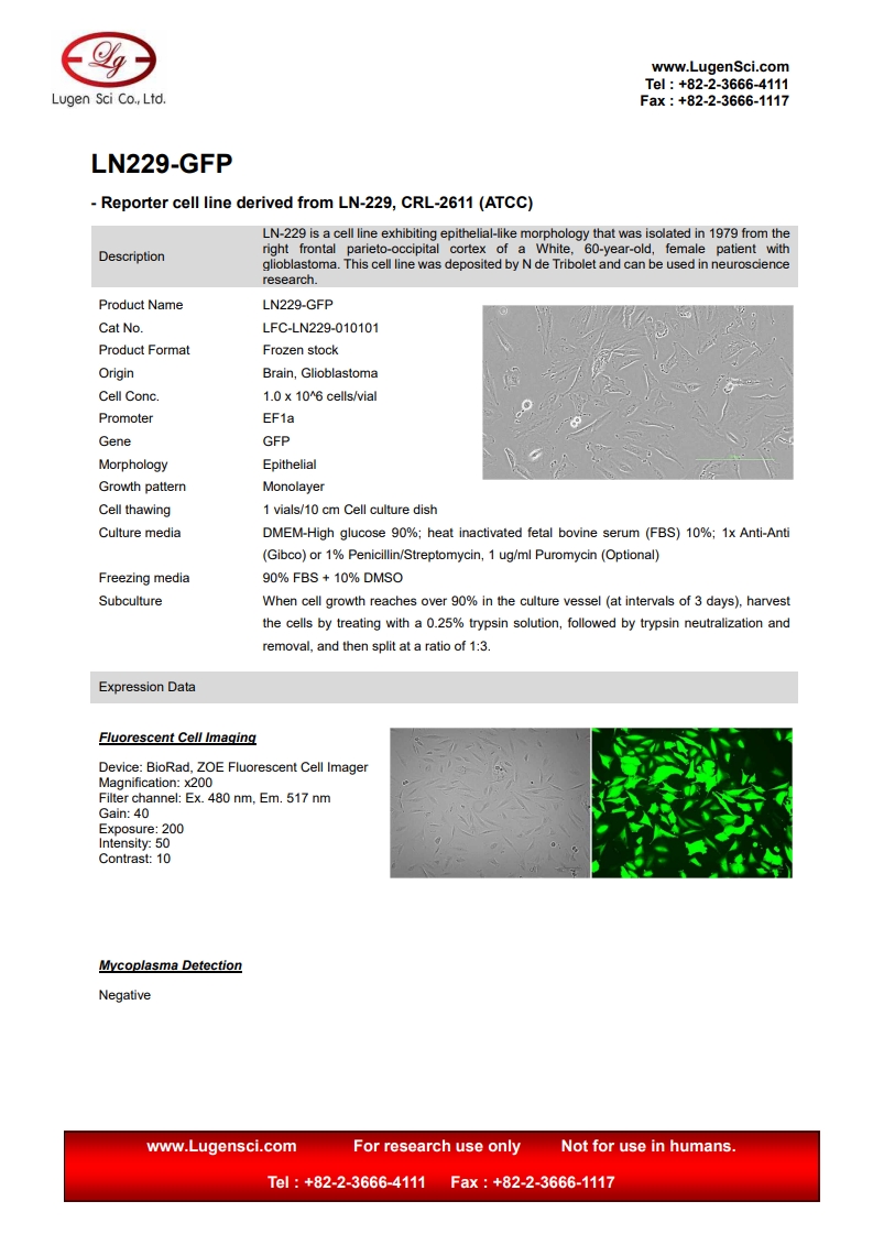 PRODUCT NAME LN229-GFP