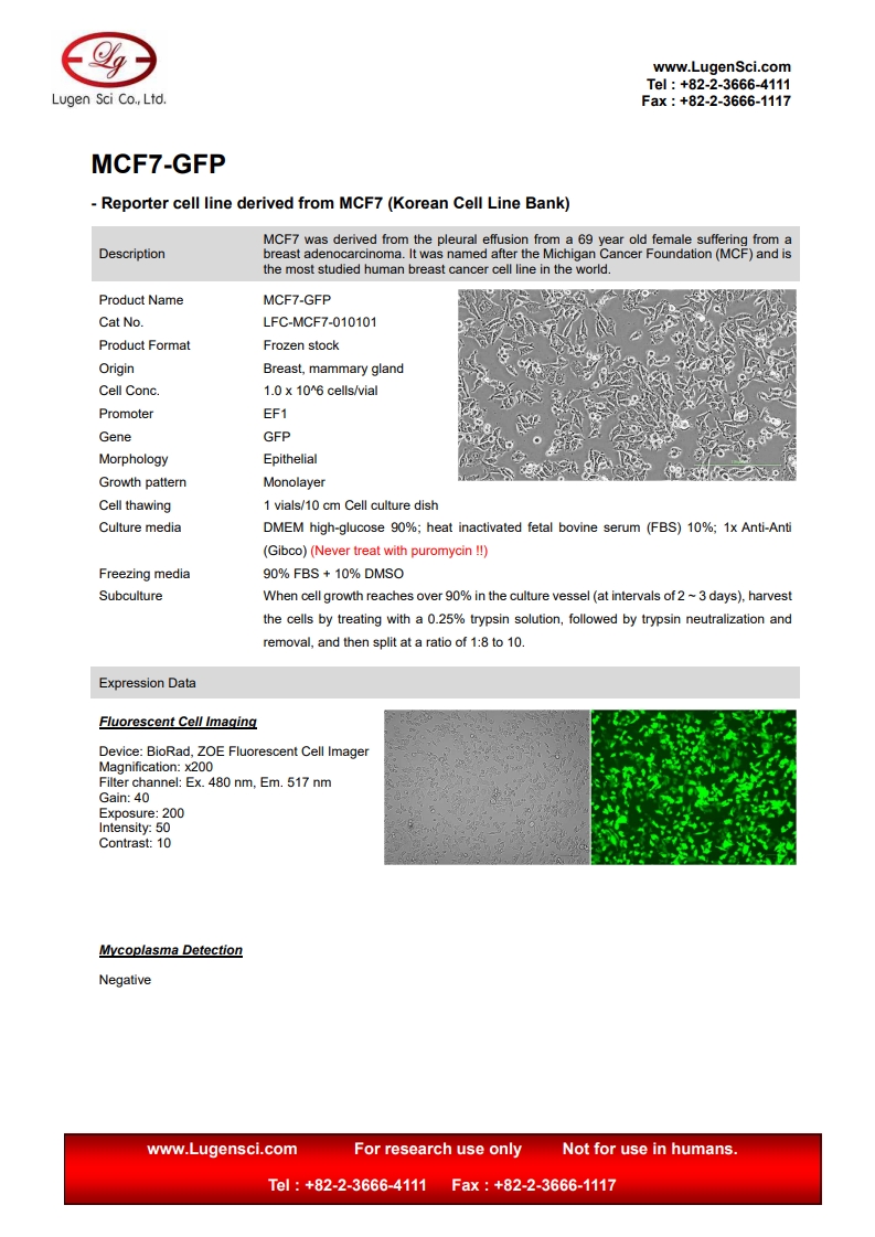 PRODUCT NAME MCF7-GFP