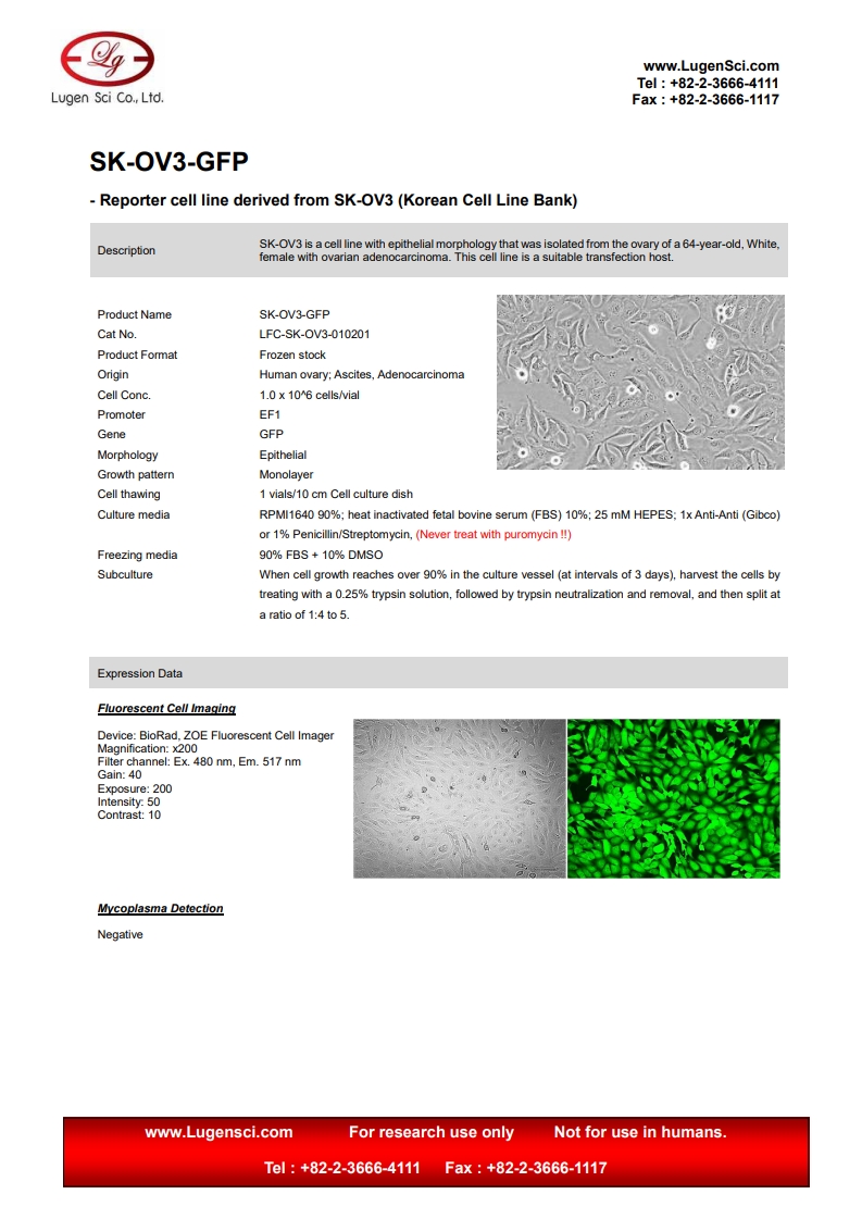 PRODUCT NAME SK-OV3-GFP