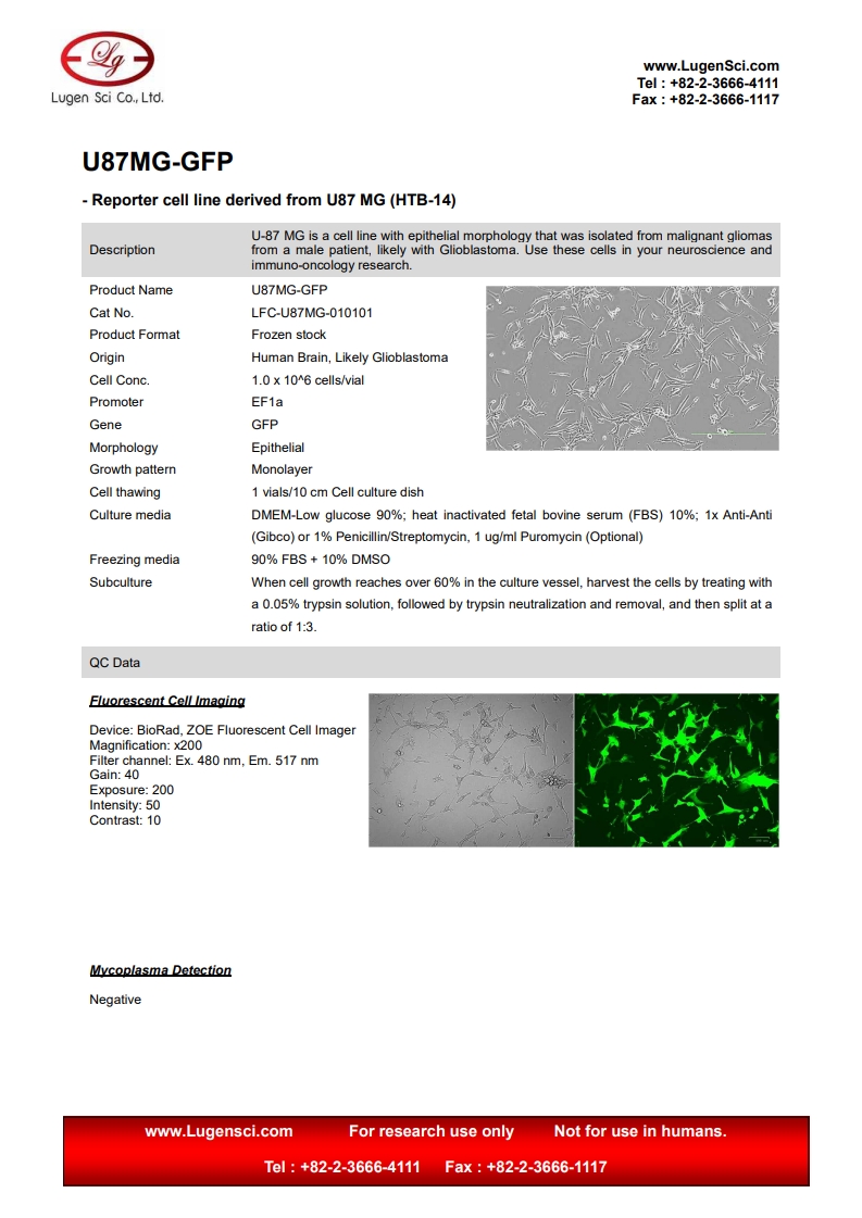 PRODUCT NAME U87MG-GFP