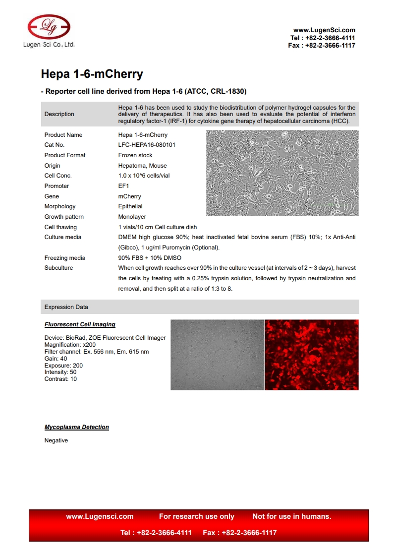 PRODUCT NAME Hepa 1-6-mCherry