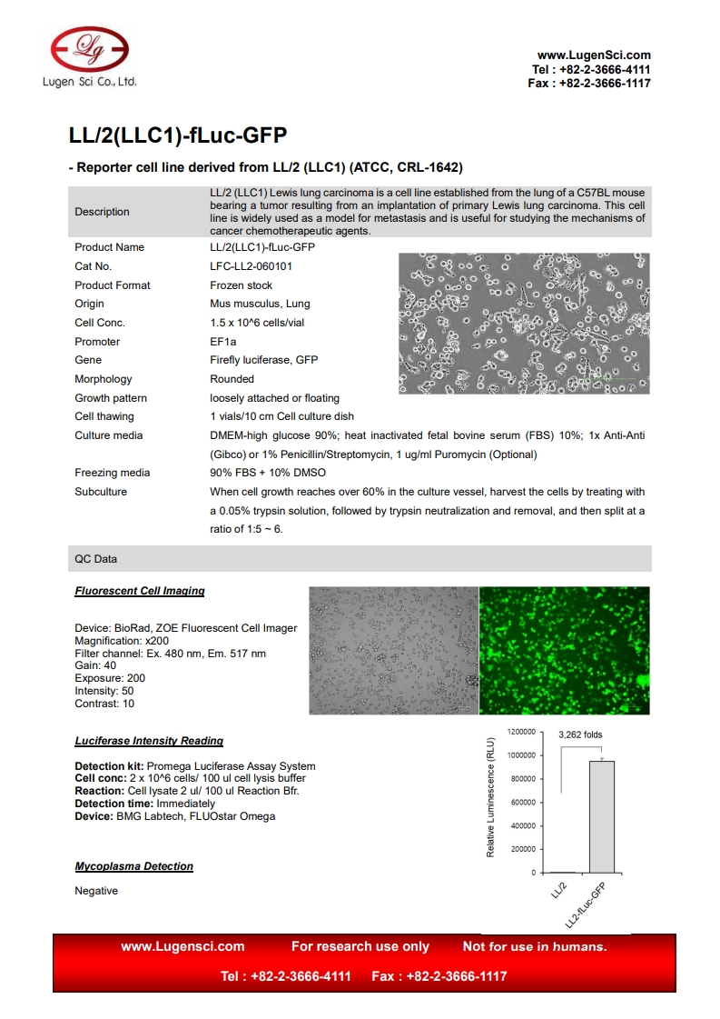 PRODUCT NAME LL/2(LLC1)-fLuc-GFP