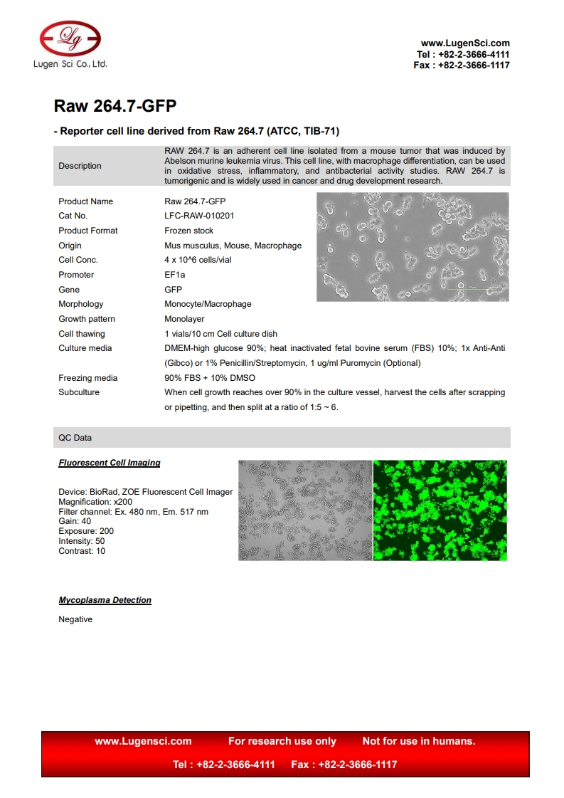 PRODUCT NAME Raw 264.7-GFP