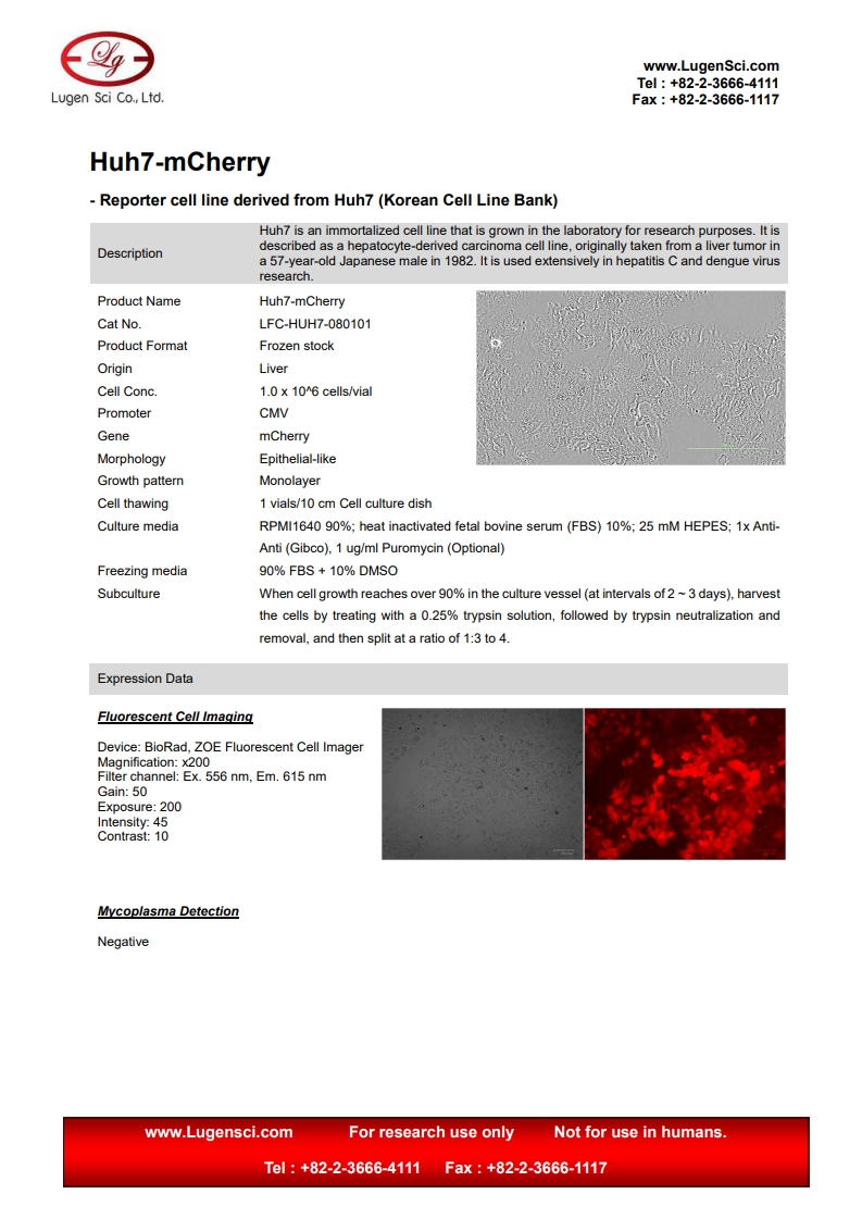 PRODUCT NAME Huh7-mCherry
